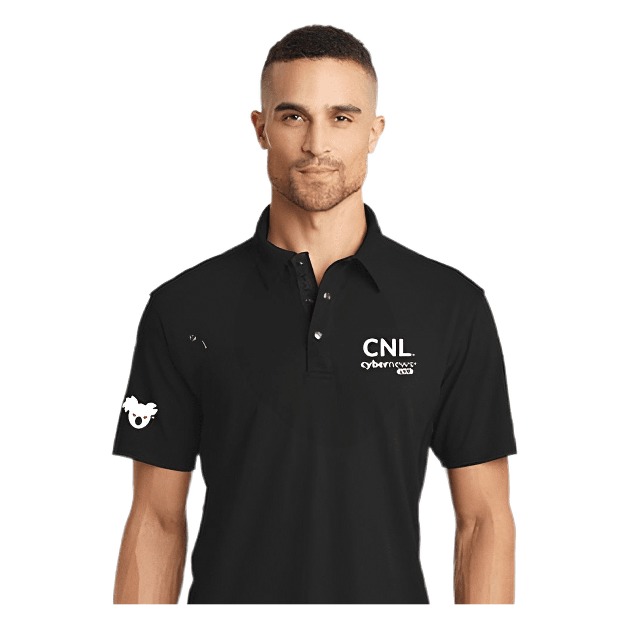 - 3-snap square placket with debossed logo metal snaps